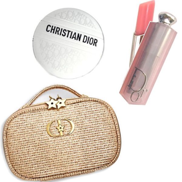 DIOR ディオール ビューティー&ケア セット ホリデー ゴールドバニティバッグ ポーチ 3点セット 限定 ディオール アディクト リップグロウ ピンク リップバームケア口紅 ルボーム マルチクリーム cd-gift-2025-setコスメ ギフト コフレ【売れ筋】