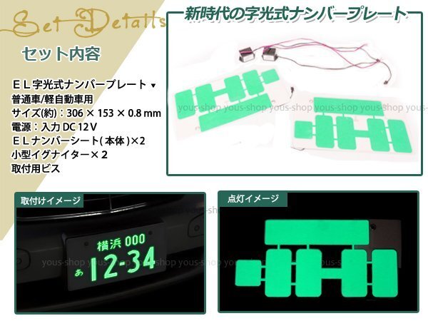 EL発光 ナンバー プレート フレーム 2枚組set 12V車 完全防水 緑 收藏