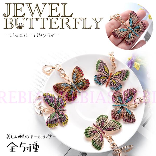 今だけ送料0円 【ライトブルーピンク】 ジュエル バタフライ キーホルダー 蝶 宝石 ジュエリー キーチェーン 收藏