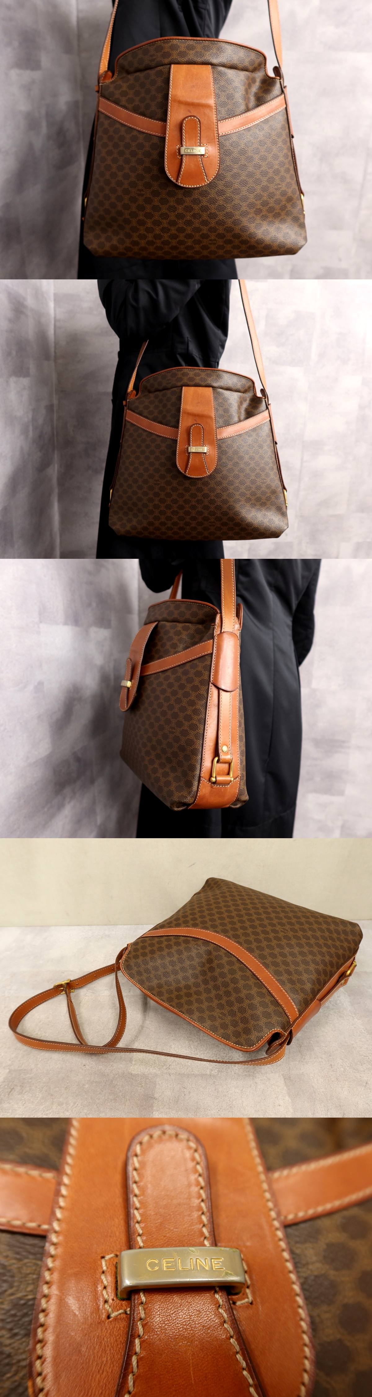 ●超美品●CELINE セリーヌ●マカダム●ロゴ金具●PVC カーフ レザー●ショルダー バッグ●ブラウン系●G金具●ヴィンテージ●B5●Js62231 收藏