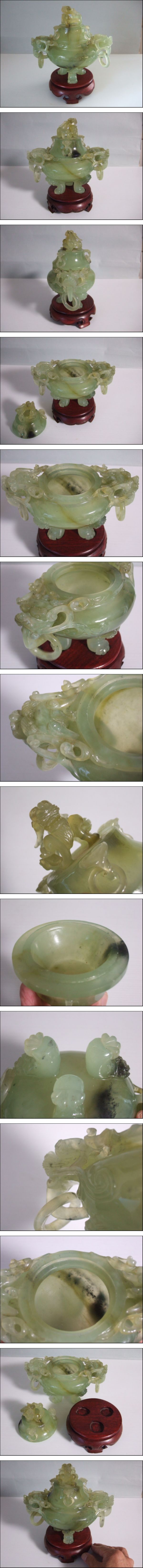 | 商品説明 | 数ある同手のなかでも選ばれし獅子三足香炉の優品也。 小欠け2箇所、蓋裏に製造時からと思われる極小ホツ幾つかあり。 他、見落としがあるかもしれません。未使用長期保管の品。 サイズ = 本体 高さ 16.5㎝ 奥行 11㎝ 横幅 18㎝ 程。台座含まず。 画像のものがすべてとなります。ご納得のうえ御入札願います。 □ 送料 / 無料にて承ります。free shipping。 |