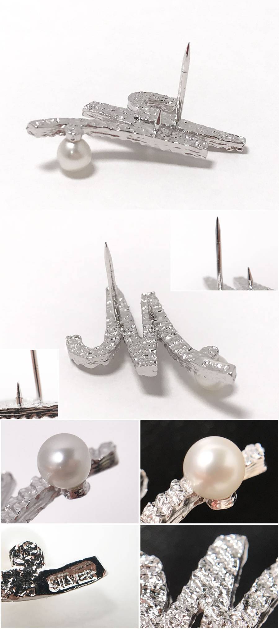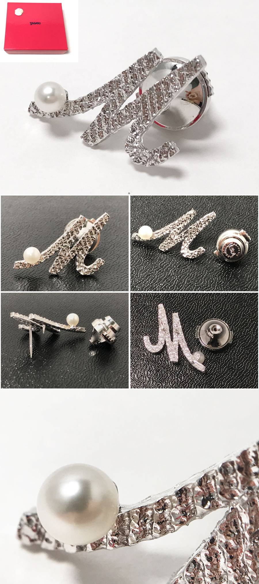 ◆美品!田崎真珠 TASAKI パール ピンブローチ イニシャル M SILVER刻印 タイタック 本真珠約3.8mm 総重量約4.4g 箱付き 收藏