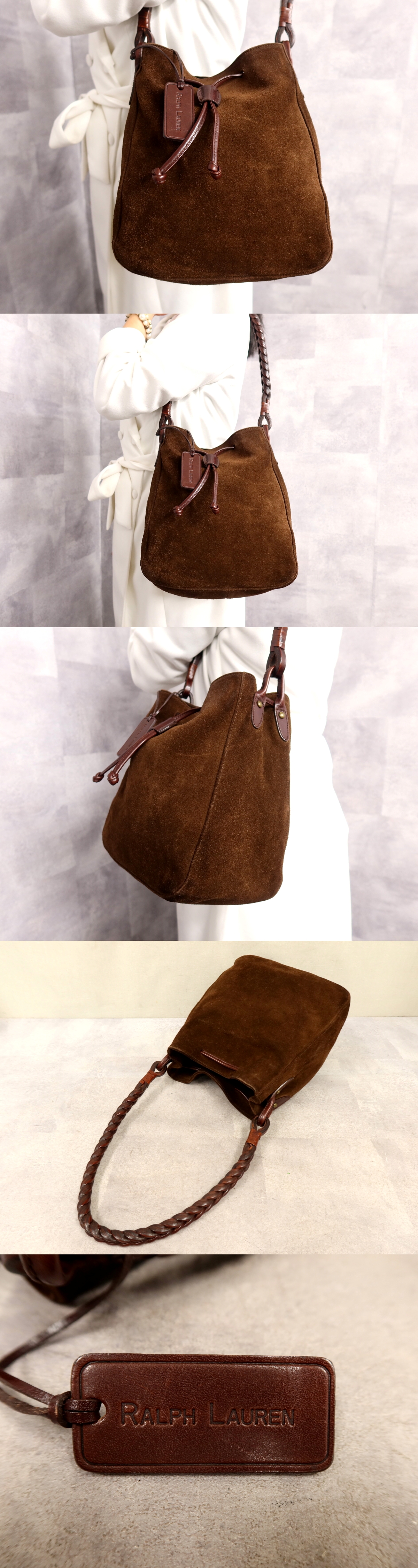 ●超美品●RALPH LAUREN ラルフローレン●スエード カーフ レザー 本革●ショルダー ハンド バッグ●ダークブラウン●G金具●収納●Js62408 收藏