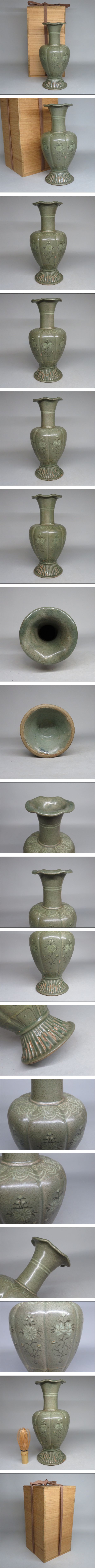 | 【李朝/高麗 特集出品】高麗 青磁象嵌 菊花牡丹紋花口瓶 花入 朝鮮古陶磁器/李朝時代 朝鮮美術 | ||