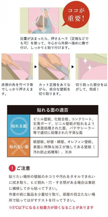 | 「しっかり貼れて、キレイにはがせる」機能と快適さを実現。思いっきりお部屋のイメージチェンジをお楽しみいただける、手軽なシールタイプのウォールペーパーです。 ※モニターの設定などにより、実際の商品と色味が異なる場合がございます。 ※製造ロットにより色味が異なる場合がございます。こちらによる返品交換はお受けできかねます。あらかじめご了承ください。 |