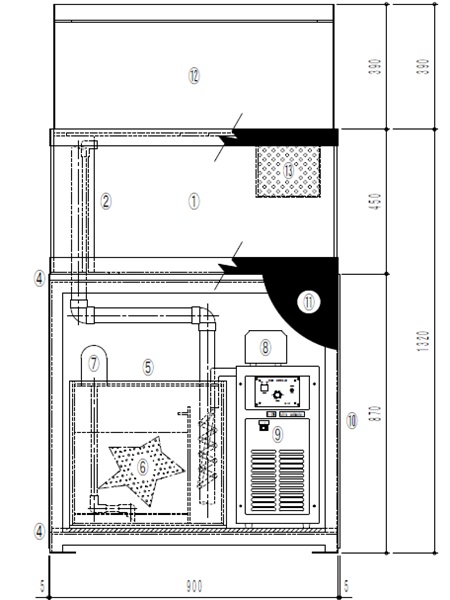 | 寸法 間口×奥行×高さ(架台) | 900×450×450(870)mm |