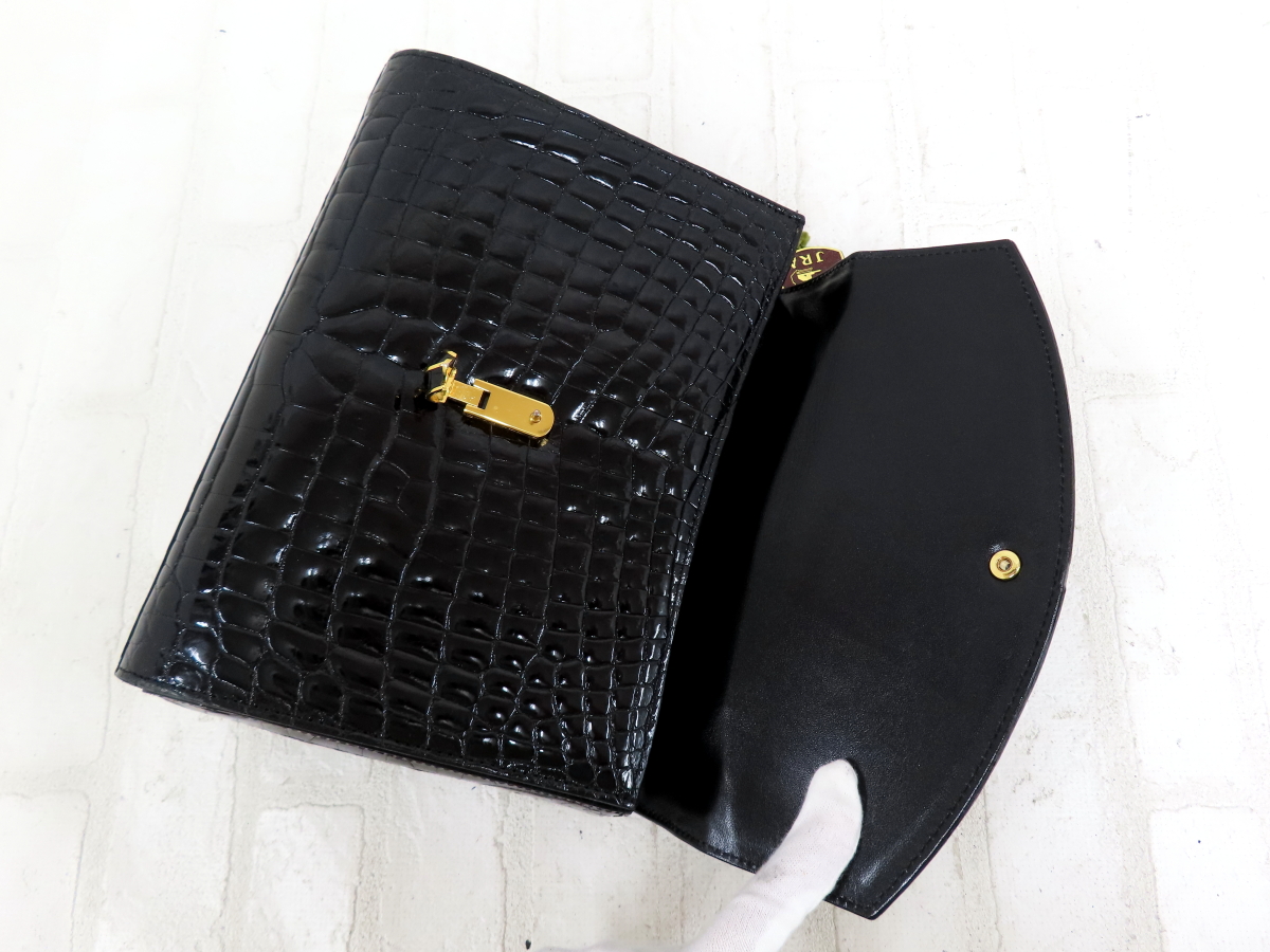 ◆超美品◆TOKYO JRA◆シャイニング クロコダイル 本 ワニ 革◆ハンド バッグ◆ブラック ゴールド金具◆フラップ◆腕掛け◆A15358 收藏