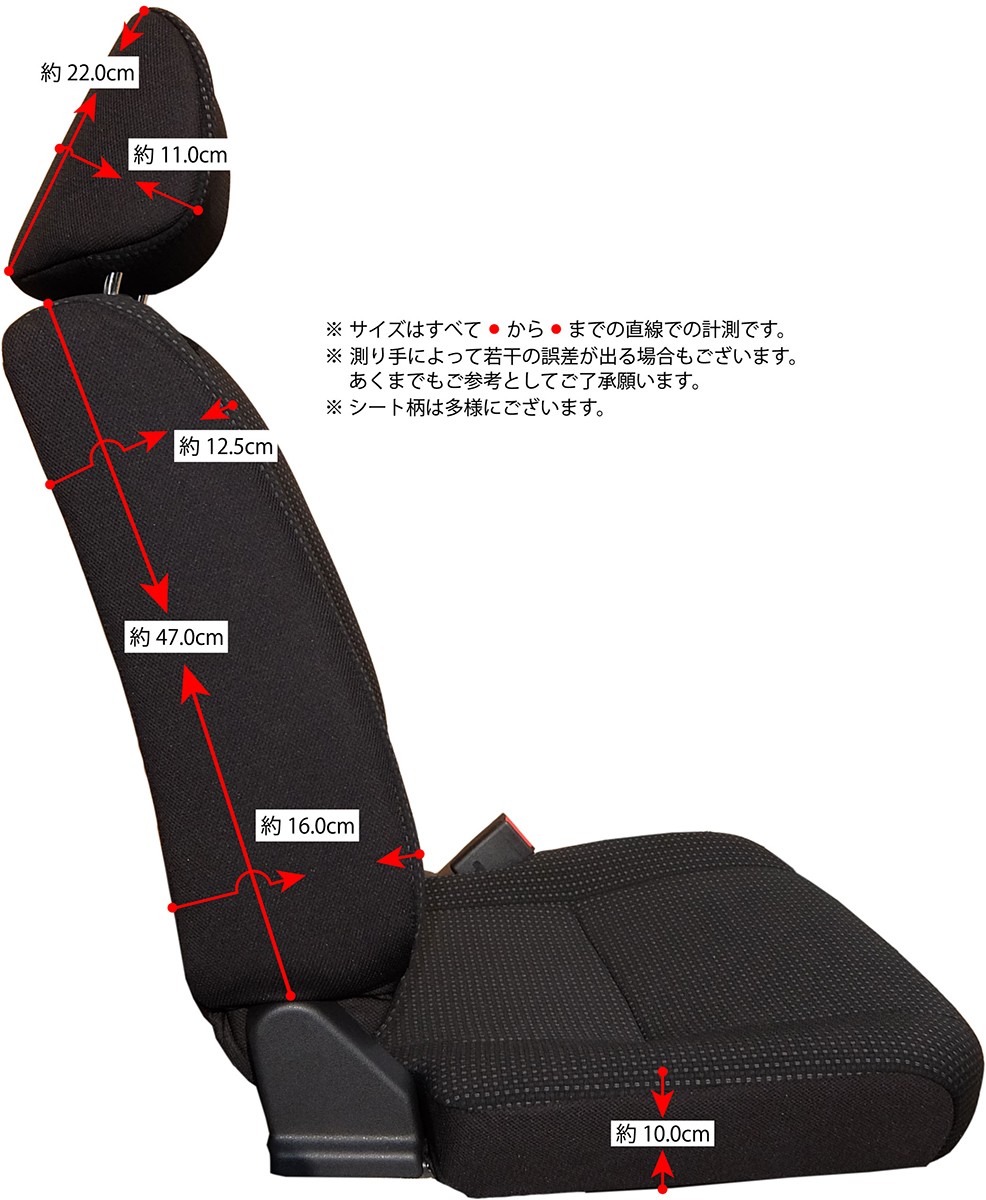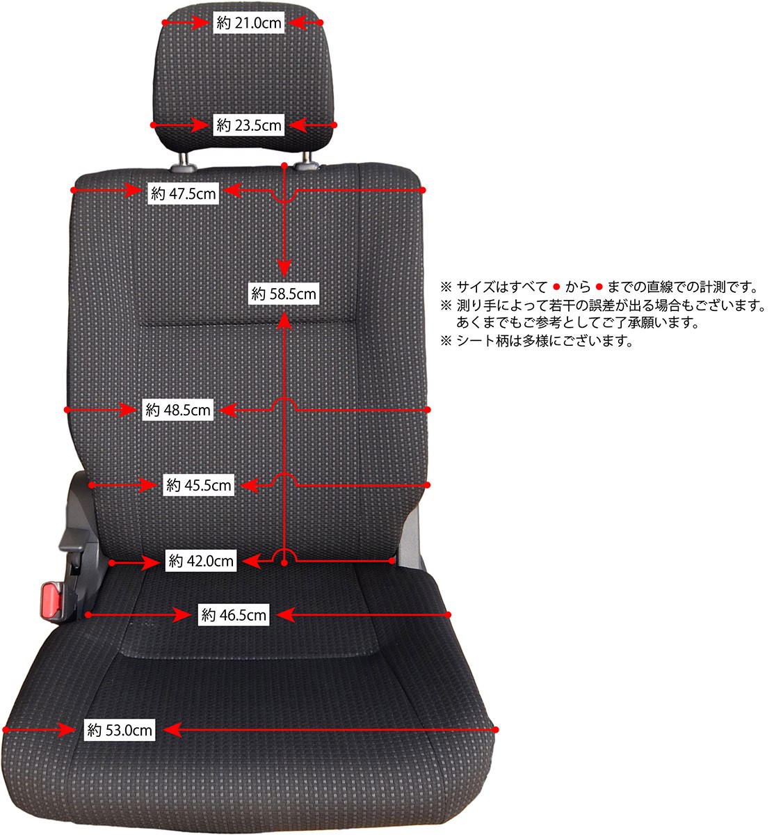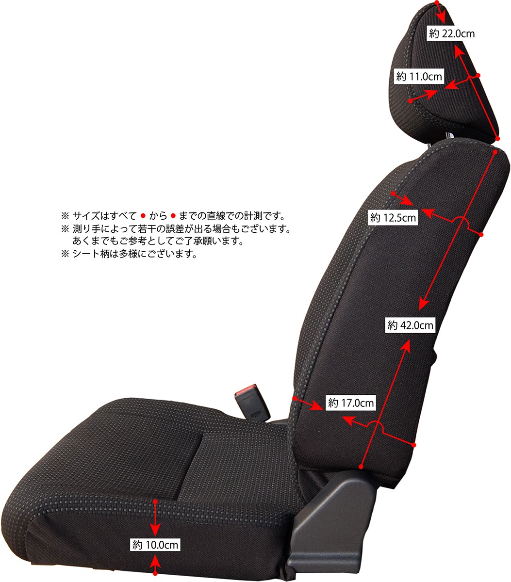 | その他 | *シート柄は多様にございます。 ※カバー装着による生地の摩擦の為、2列目シート格納がし辛くなります ※一部改良前はヘッドレストの形状が違う為、適合外となります。 ハイゼットカーゴ 一部改良前後の見分け方をご覧ください。 |