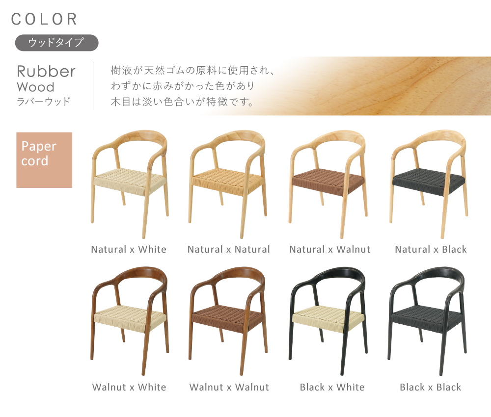 送料無料 ダイニングチェア 天然木 無垢 ラバー 2脚セット 選べるカラー ジャパンディ 北欧 ペーパーコード シンプル モダン 肘掛 完成品 收藏