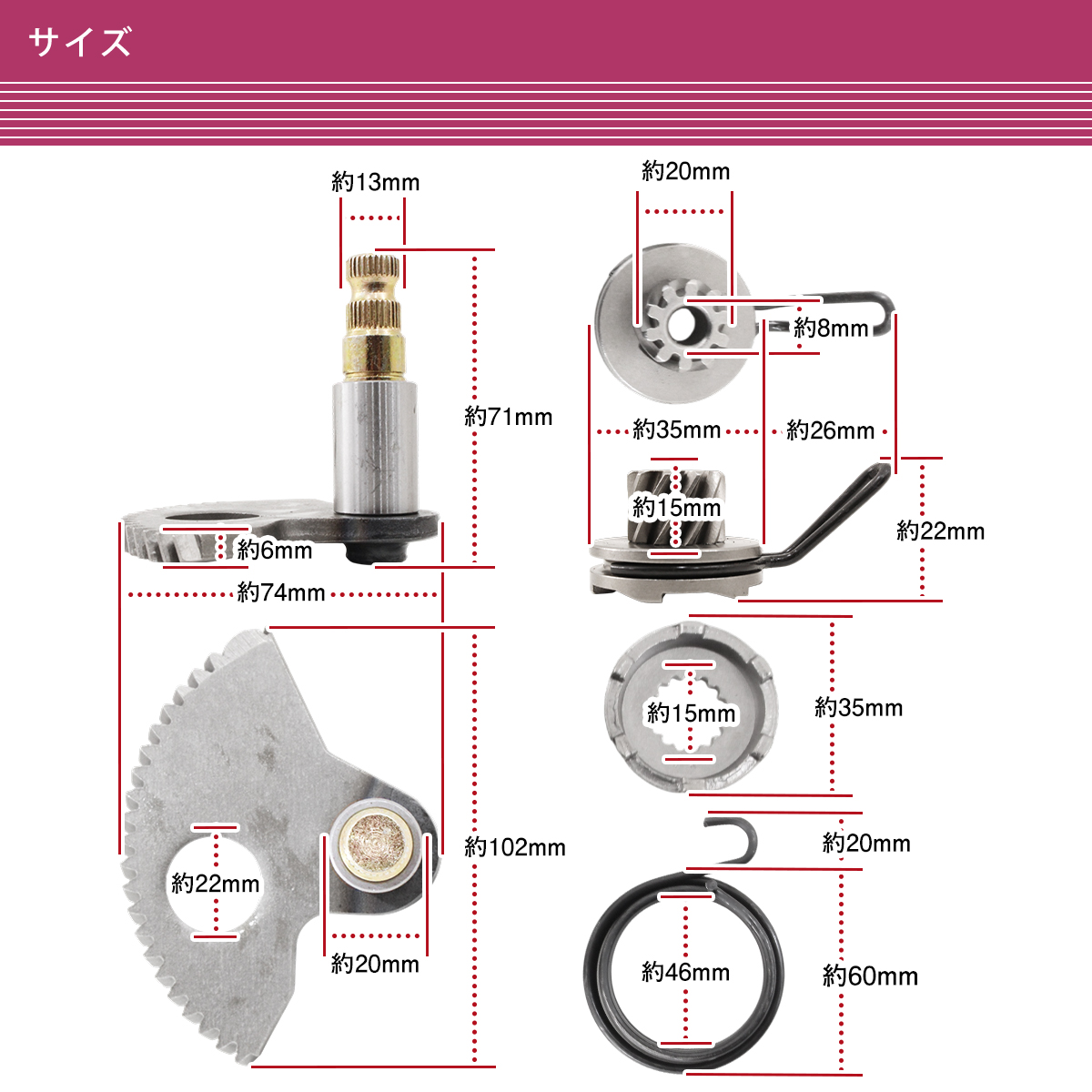 グランドアクシス BW S100 BWS100(4VP) Zuma100 YW100 Aerox キックスタート ASSY キックシャフト ピニオンギア 互換品番 4VP-E5601-00 收藏