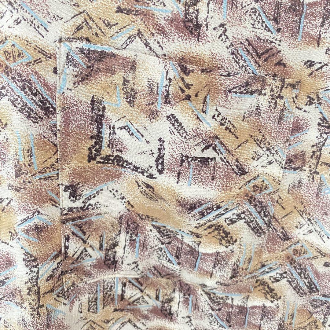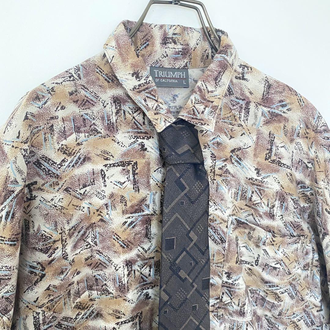 古着 アメリカ製 ネクタイシャツ 総柄 アート レーヨン L ベージュ レトロ セット売り コーデ売り 古着コーデ USA製 レトロ 收藏