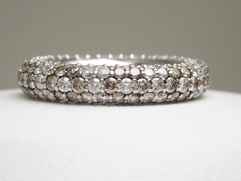 Ponte Vecchio ポンテヴェキオ ETERNO エテルノリング K18WG D1.98ct 1.15ct #10.5号 中古美品 上質ブラウンダイヤ カラーレスダイヤ 收藏