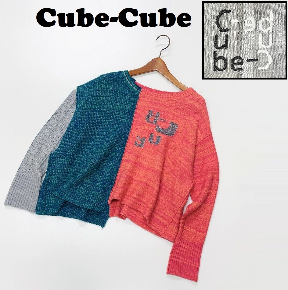 【38】Cube-Cube ピンク グリーン グレー 長袖セーター トップス ウールアクリル生地シルバーロゴ マツオ センソユニコ キューブ キューブ 收藏