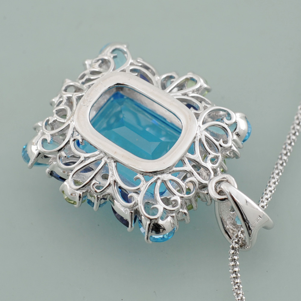 【D64】 K18WG ホワイトゴールド 天然ブルートパーズ デザイン ロング ペンダントネックレス 中古品仕上済 ソーティングラベル付 收藏