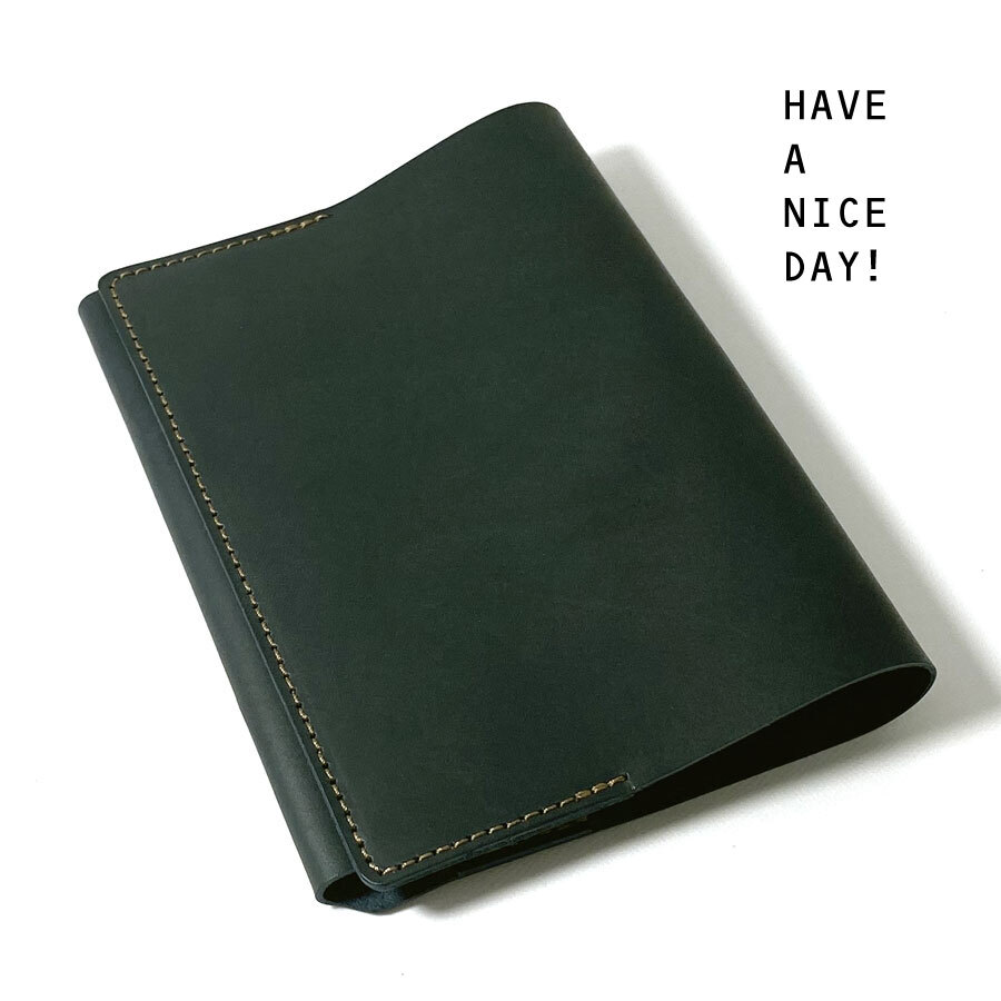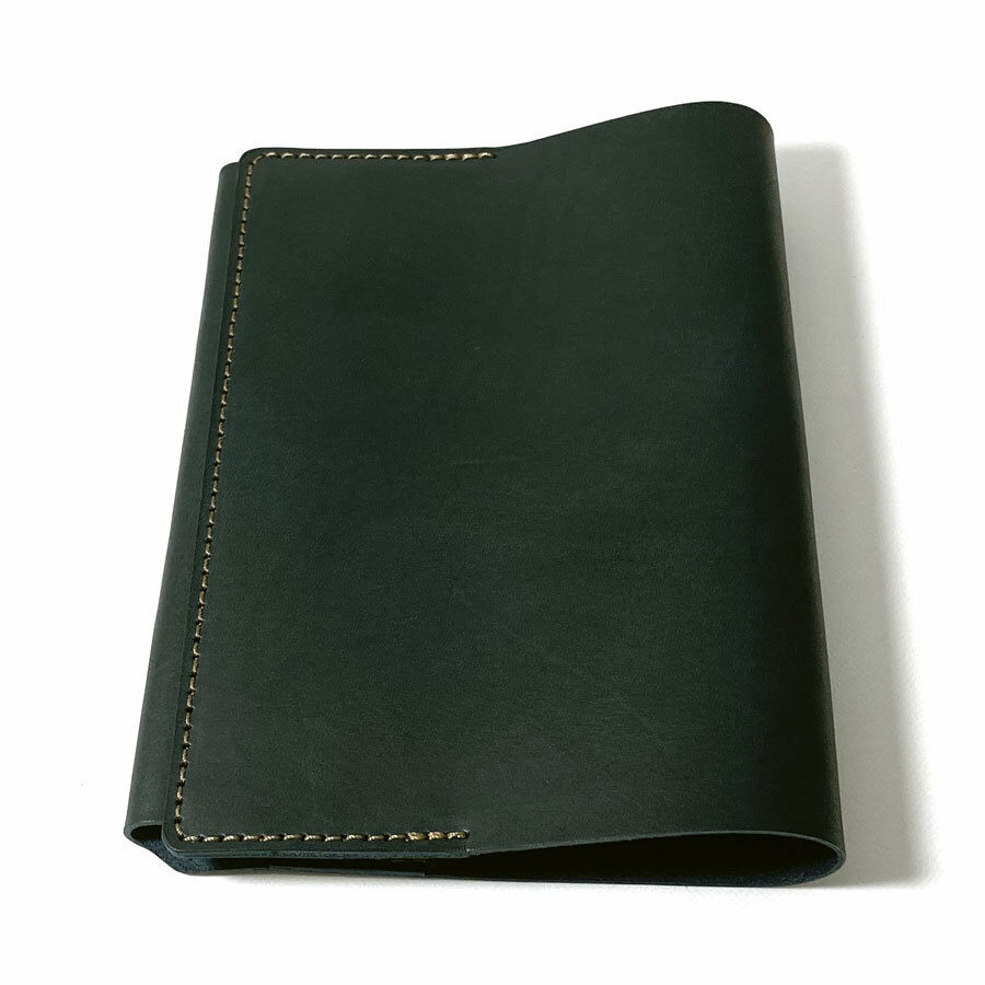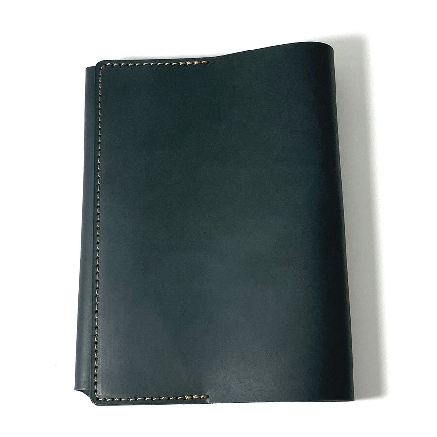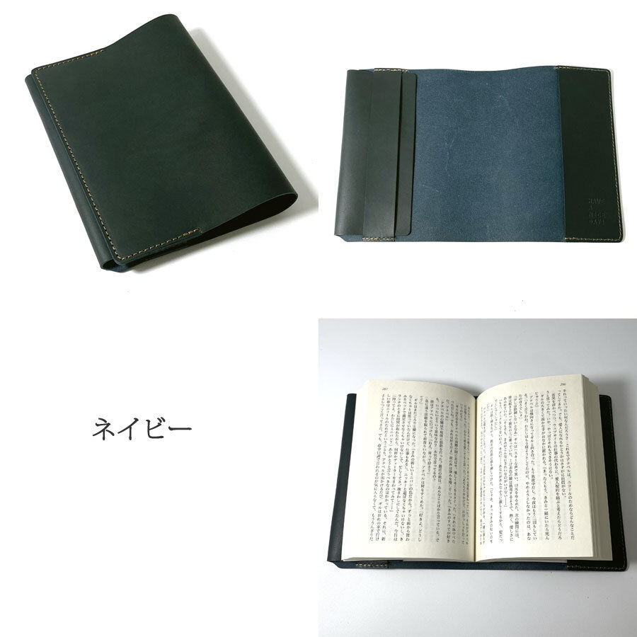 【Lサイズ】 ブックカバー 文庫本サイズ ステーショナリー 革小物 ヌメ レザー 牛革 手作り ヌメ革 革 ネイビー 收藏