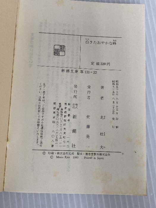 ※イタミ有。白きたおやかな峰 (新潮文庫 き 4-22) 新潮社 北 杜夫 收藏
