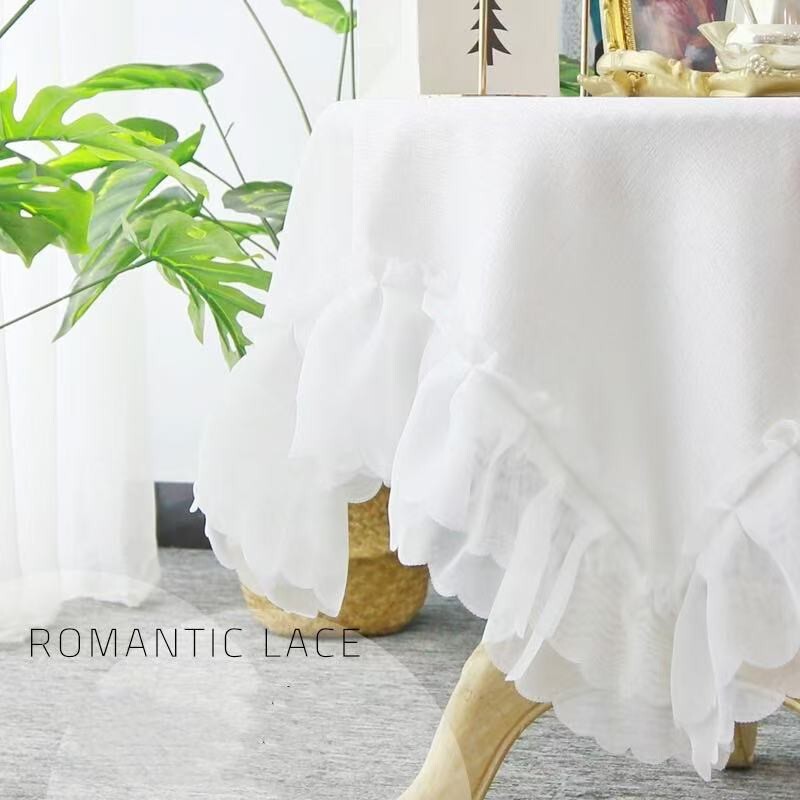 ホワイト テーブルクロス レースカバー 白 マルチカバー 正方形 可愛い 無地 フリル付き 可愛い 90x90 收藏