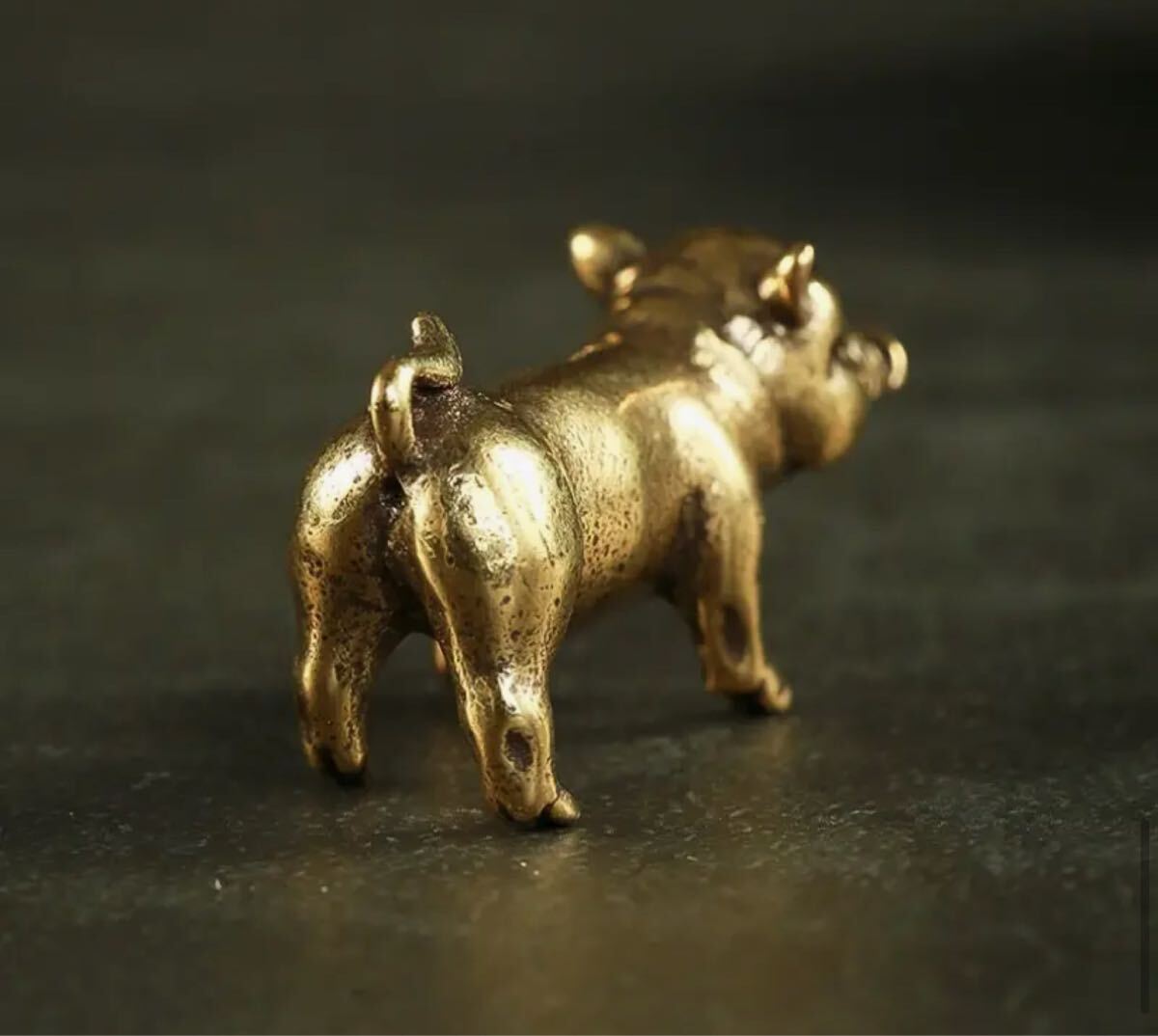 真鍮製ブタフィギュア ミニチュアブタ 真鍮製 置物 金運 縁起物 ゴールド 收藏