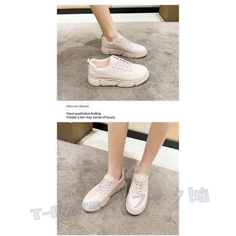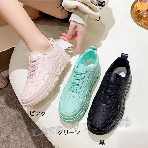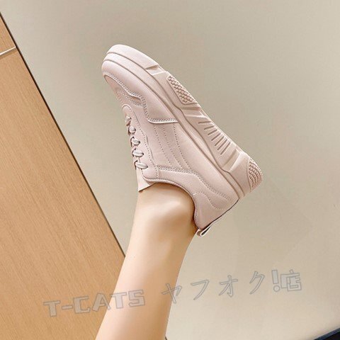 ☆新品レディース スニーカー 紐靴 シューズ 通気性 滑り止めソール 弾力 ローカット 4.5cm ピンク 23~26.5cm サイズ選択可 收藏