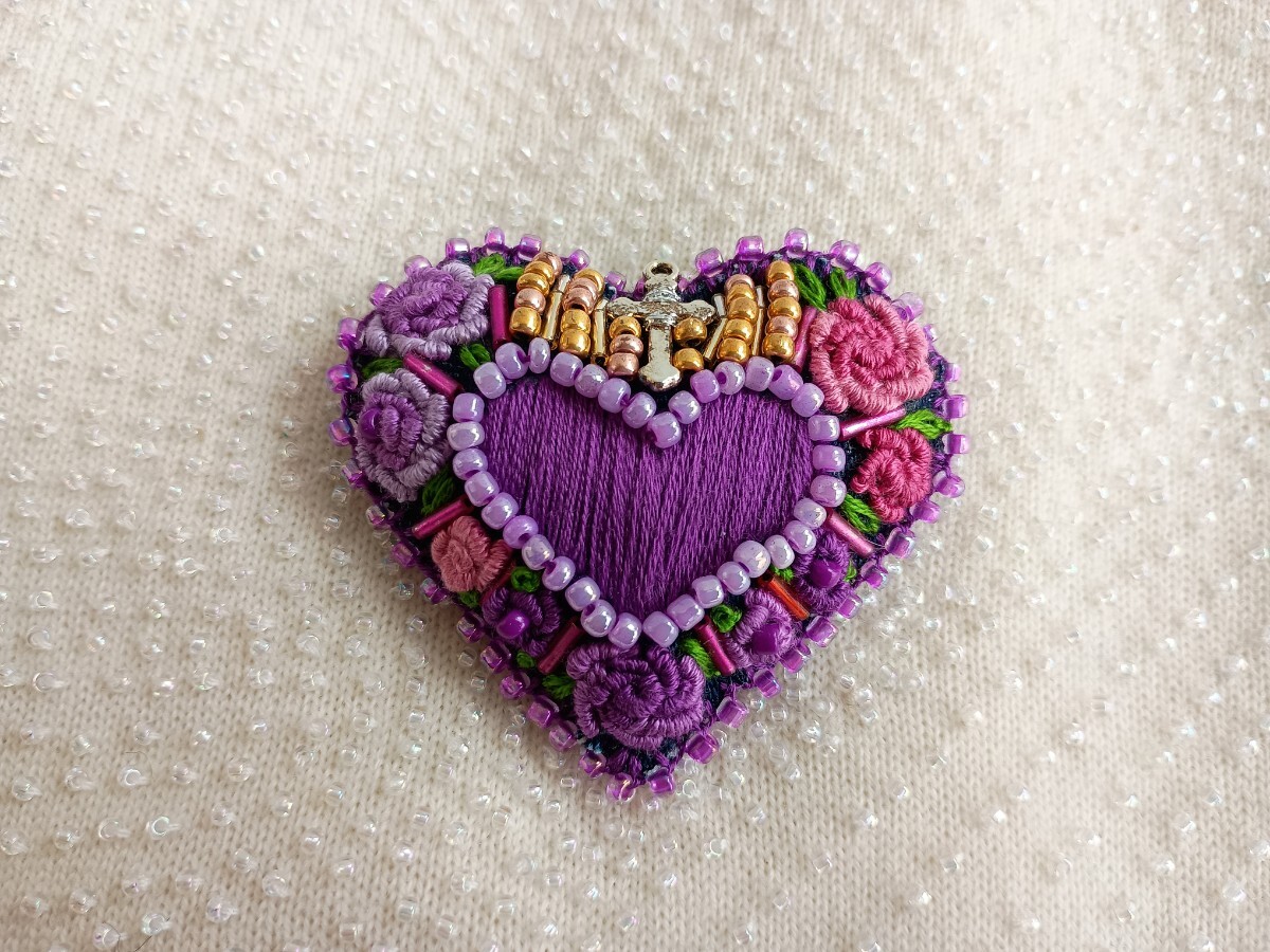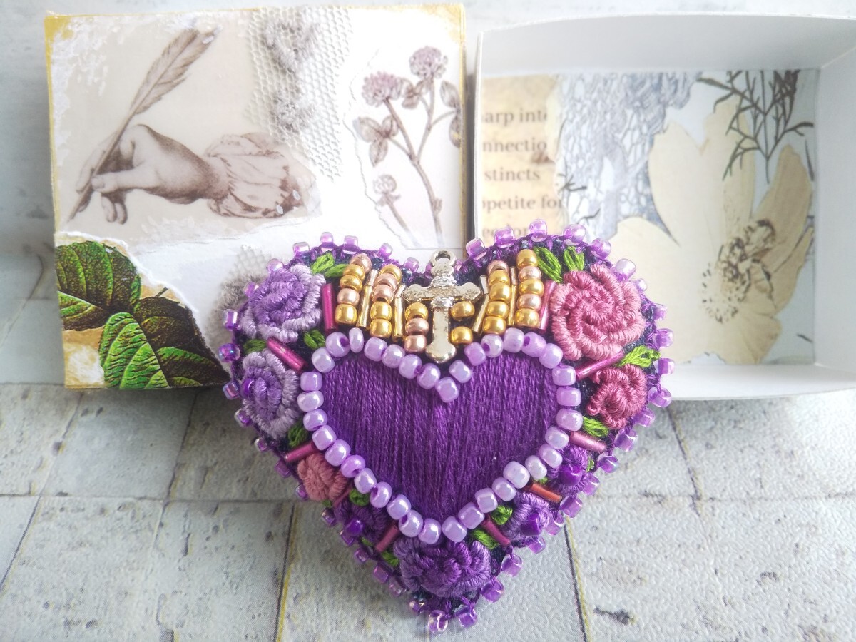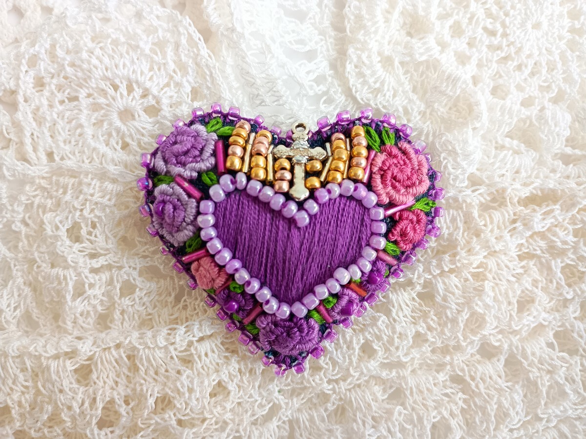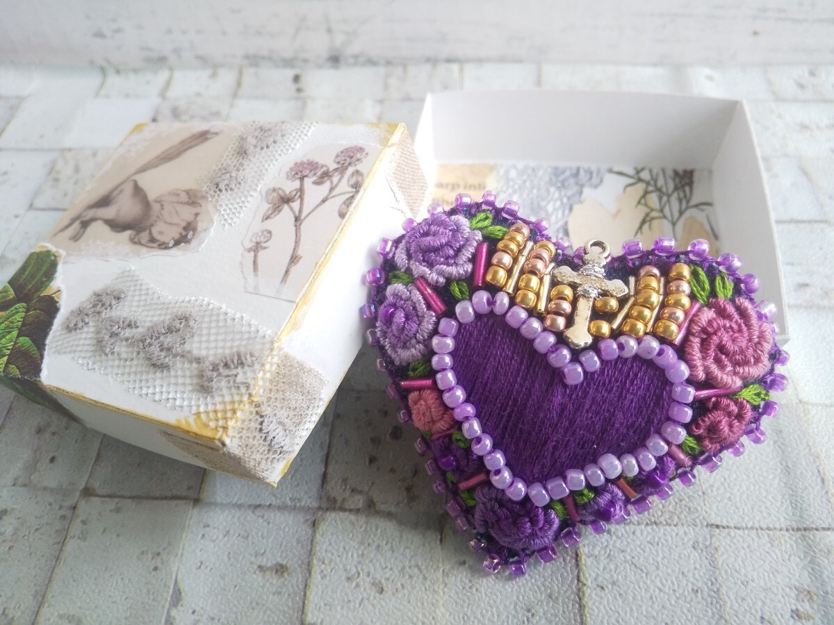 コラソンハート 刺繍ブローチ ハートブローチ 手刺繍 ハンドメイドお守り 魔除け コラージュ紙箱入り 收藏