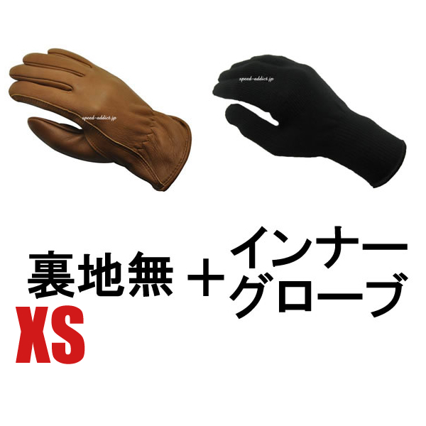 NAPA GLOVE 815BRN BROWN XS + インナーグローブ/ナパグローブ茶色裏地なし裏地無しライナーバイク用手袋鹿革本革レザーグローブ女性用usa 收藏