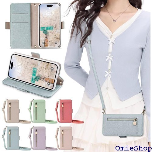 iPhone15 手帳型ケースショルダー スマホケース ネット 薄型軽量 耐久性 全面保護 着脱しやすい ブルー 1316 收藏