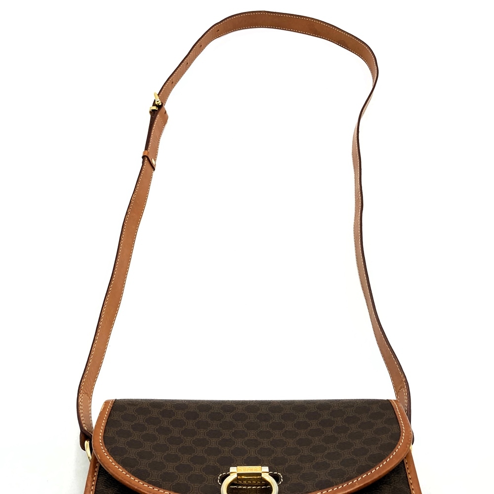 CELINE セリーヌ DM91 ショルダーバッグ マカダム柄 PVC ブラウン 茶色 ゴールド金具 ロック金具 斜め掛け 收藏