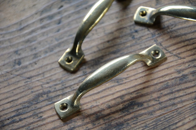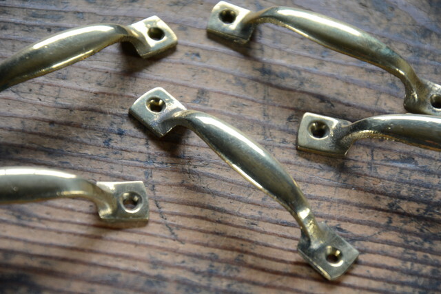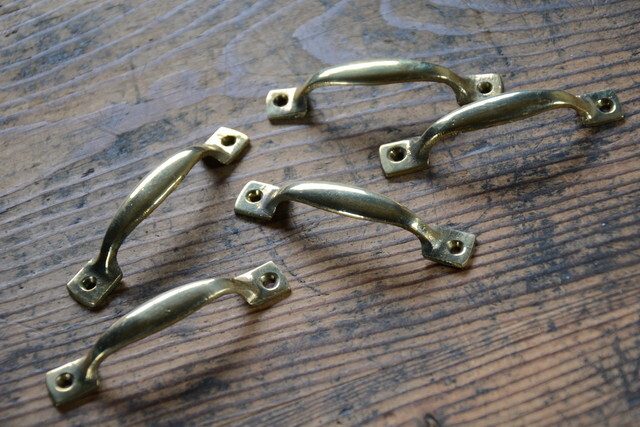 NO.2071 古い真鍮鋳物のヒル取手 5個SET 77mm 検索用語→A100gアンティークビンテージ古道具真鍮金物小引き出し本立本棚把手取っ手引手 收藏