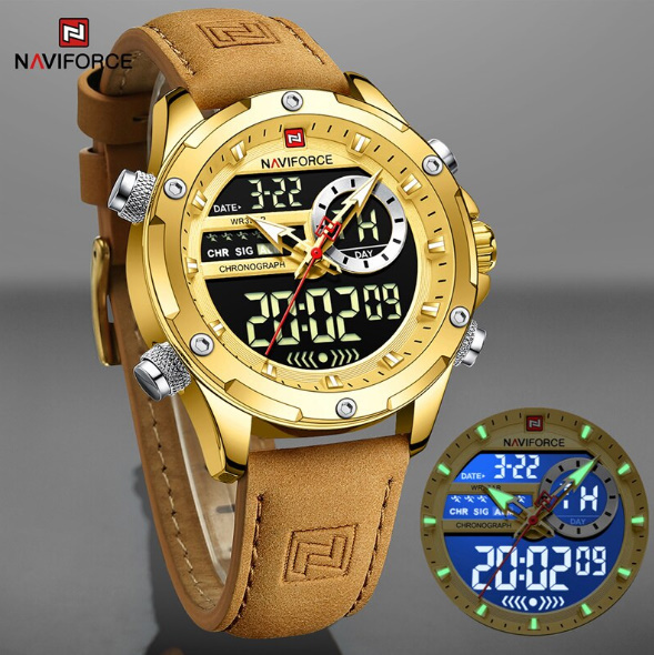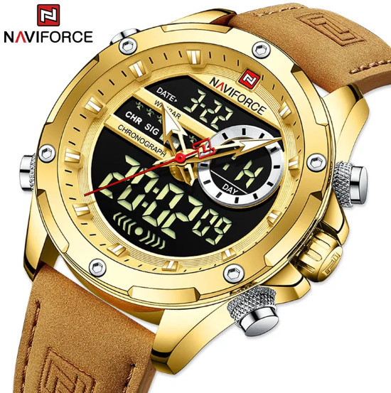 | NAVIFORCE 男性 メンズ 高級時計 オリジナルブランド カジュアル スポーツ クロノグラフ アラーム クォーツ 革 防水 | ||||