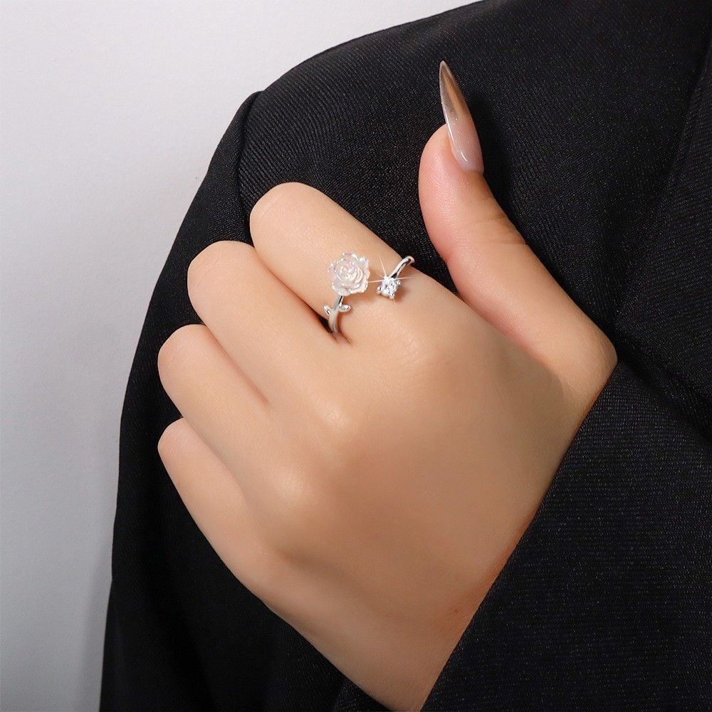 ローズモチーフ リング シルバー フリーサイズ 上品 シンプル 華やか花デザイン レディース ギフト リング 指輪 アクセサリー 收藏