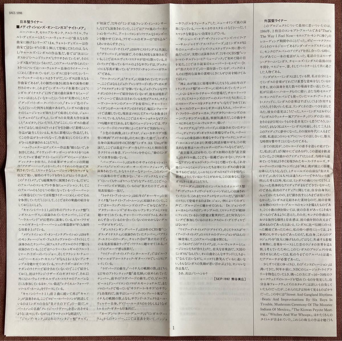 チャールズ・ミンガス楽曲集/ハル・ウィルナー/ビル・フリゼール/ドン・バイロン/ジュリ・アレン/マーク・リボー/ヘンリー・スレッギル1992 收藏
