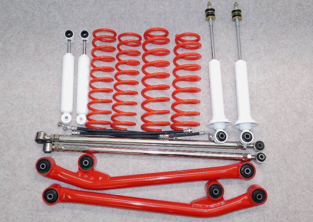 | 商品説明 | ジムニーJA22、12,JB32用 2インチUPコイル AL-MAUJ製ロングショック ステンレスラテラルロッド ロングブレーキホース フロントアーム(キャスター角補正)の おまかせ2インチフルセットです 乗り心地重視の設定でオールラウンドに楽しめます そのままで車検OK 日本製 業販などお問い合わせ 0774-43-7408黒川まで 送料無料 北海道¥2000 沖縄離島¥2600かかります 現在リアショックのみ赤色です |