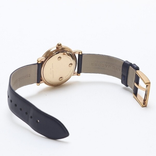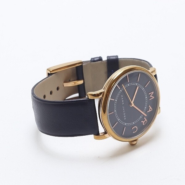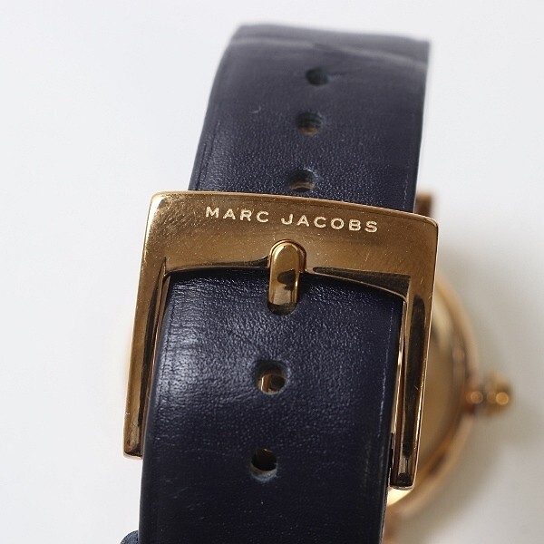 【FA391】◆MARC JACOBS マークジェイコブス MJ1534 クォーツ ロゴ レザーベルト メンズ 腕時計 ゴールド×ネイビー 收藏
