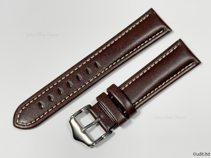 ラグ幅20mm コードバン 本革 腕時計レザーベルト ブラウン シルバー尾錠 時計用バンド LB101 收藏