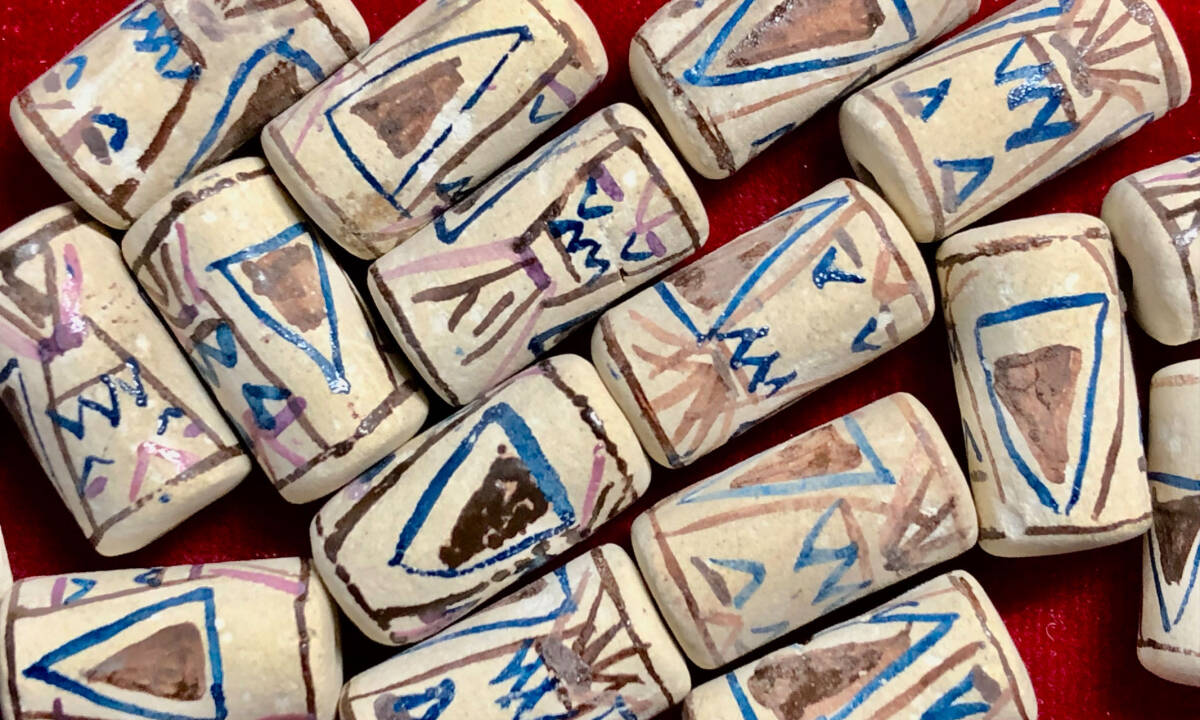 Φ 彩陶素焼ビーズ Φ 18玉で1単位 約9×17㎜円柱玉 手作り 彩釉筍紋様 手芸 アクセサリ インテリア、鑑賞魚水槽、園芸等材料に出品 收藏