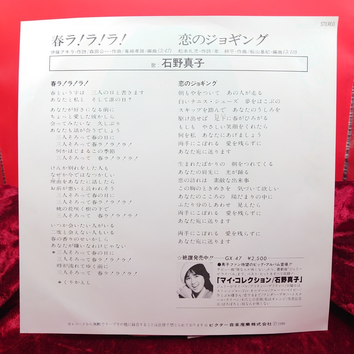 【商品】7302【EP盤レコード】石野真子 春ラララ / 恋のジョギング SV-6675 アイドル 和モノ 昭和ポップス 歌謡曲 7インチ シングル 邦楽