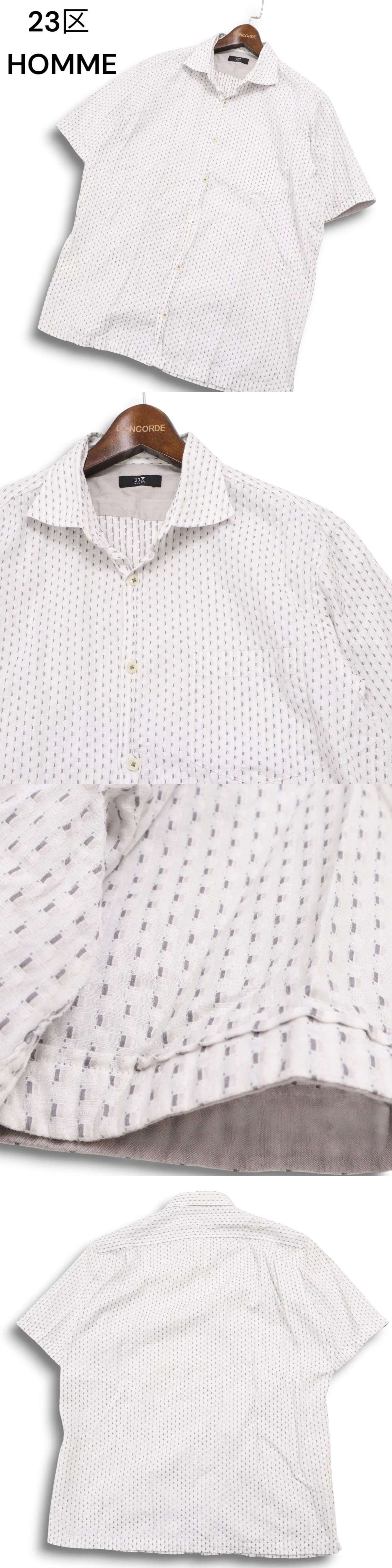 23区 HOMME オム 春夏 総柄★ 半袖 シャツ Sz.50 メンズ 白 大きいサイズ 收藏