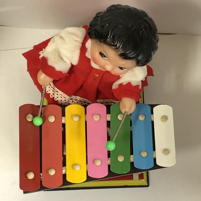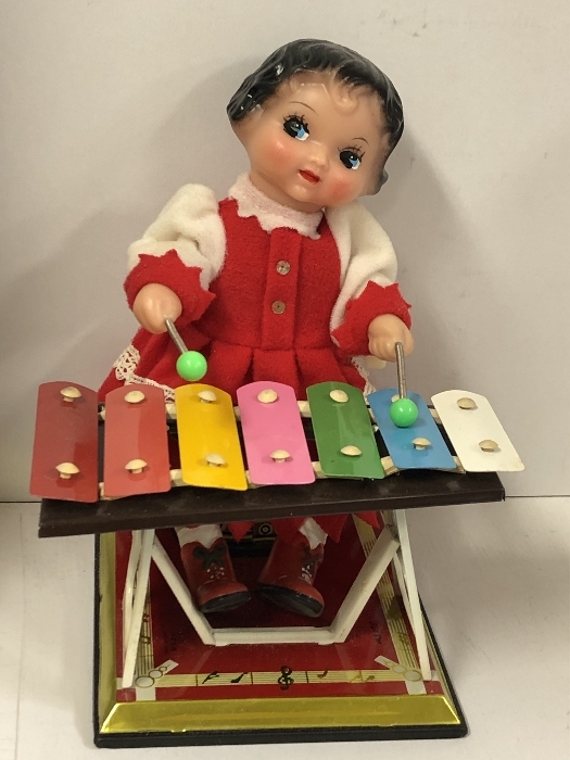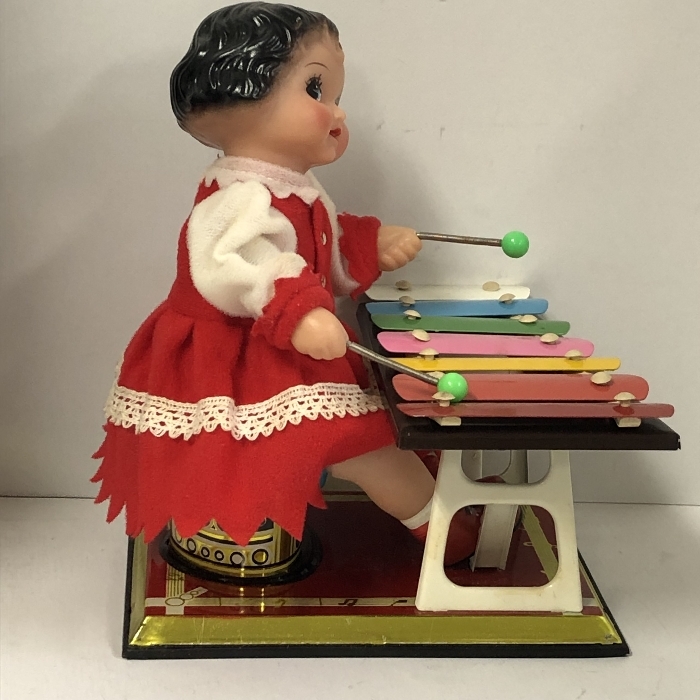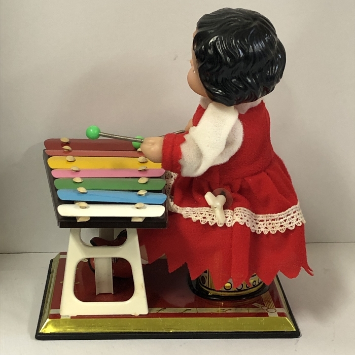 3 ジャンク品 LITTLE PERFORMER ゼンマイ式 鉄琴 ブリキ 少女 玩具 中国製 昭和 レトロ ヴィンテージ ソフビ 收藏