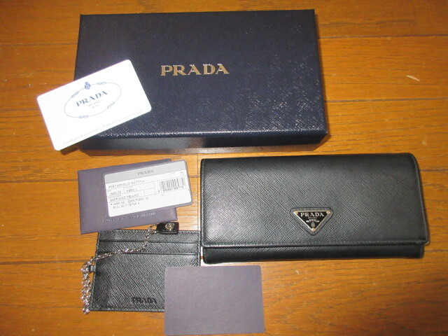 プラダ PRADA 三角 ロゴ プレート サフィアーノ レザー 長財布 ロング ウォレット 黒 箱付き 收藏