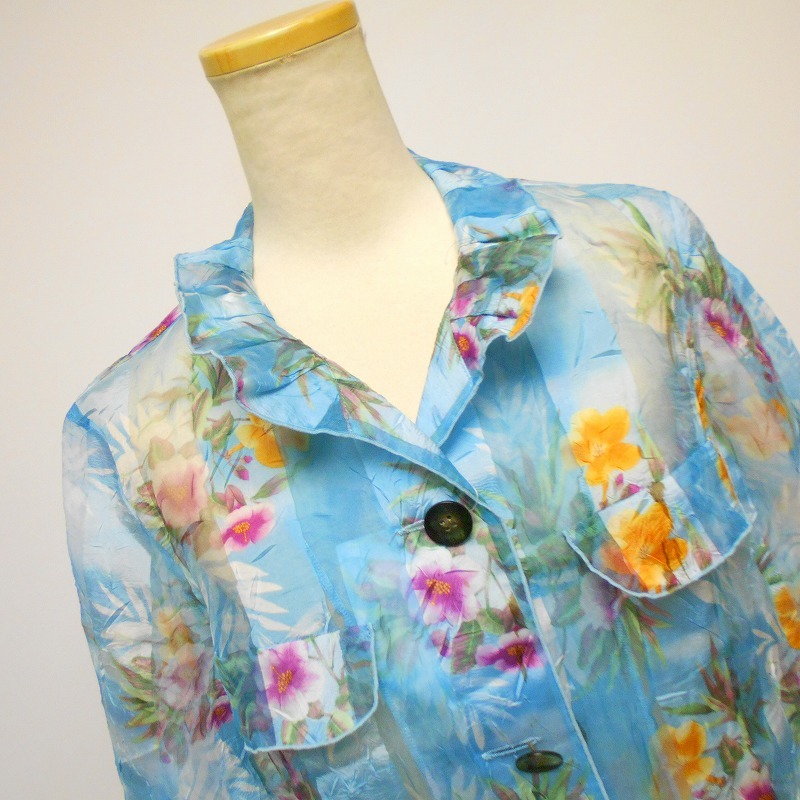 904251 INTER FASHION 水色 花柄 シースルー ジャケット カーディガン M【クリックポスト可】 收藏