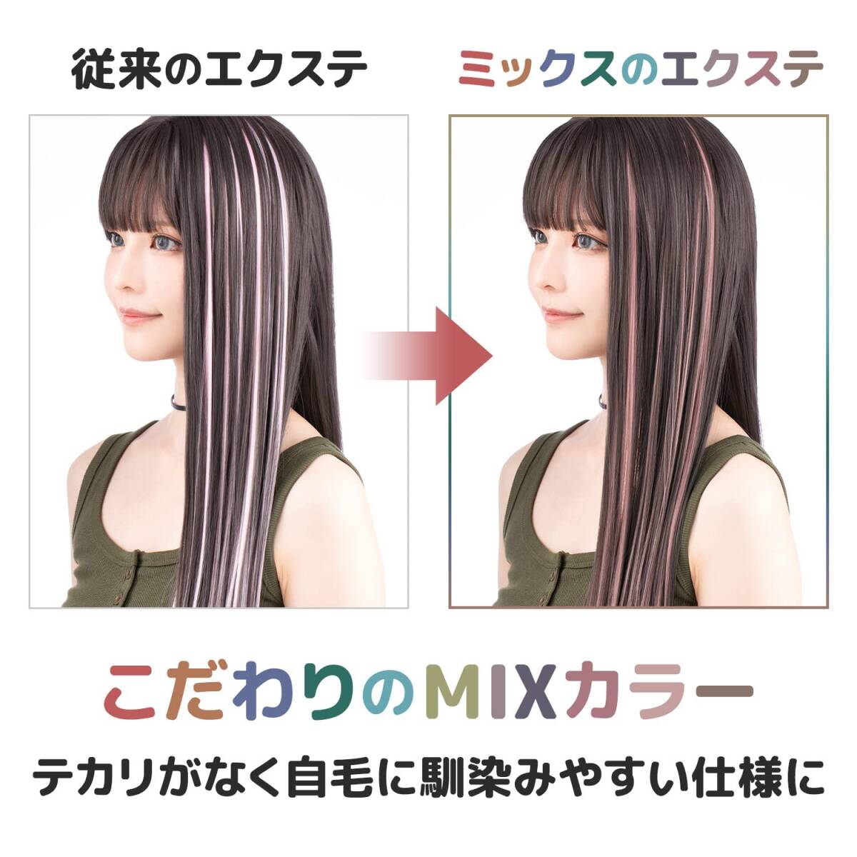 混色 ミックスカラー マット 4本セット 自然 ワンタッチメッシュエクステ ストレート くすみカラー ピンクB [クラッセ] 收藏
