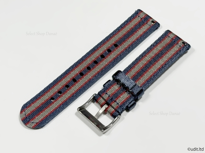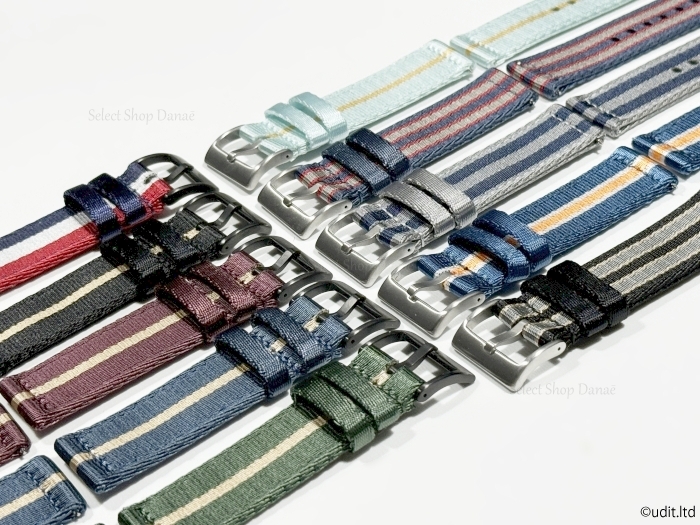 ラグ幅22mm 高品質 艶あり 分割NATOベルト ストラップ 腕時計ベルト ネイビー グレー レッド シルバー尾錠 ファブリック 二重編み DBI 收藏