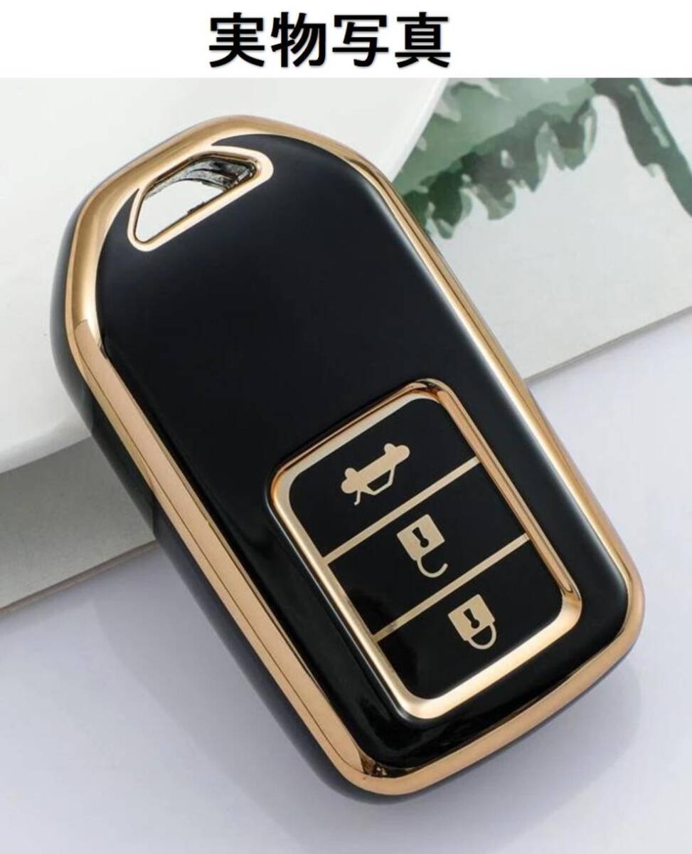 ホンダ スマートキーケース TPU キーカバー ヴェゼル シビック フィット 3ボタン ブラック×ゴールド 收藏