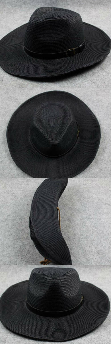 ★ヘビロテ☆大きいサイズ 形状記憶 ワイヤー入りストローハット 黒 サイズXL 62cm 紫外線防止 帽子 海水浴 キャンプ アウトドア★新品63 收藏
