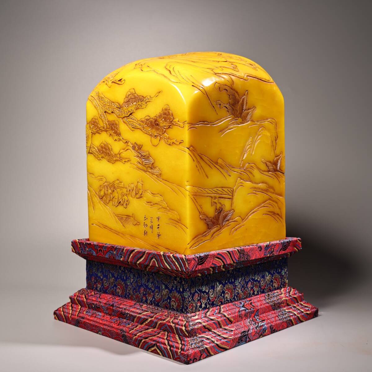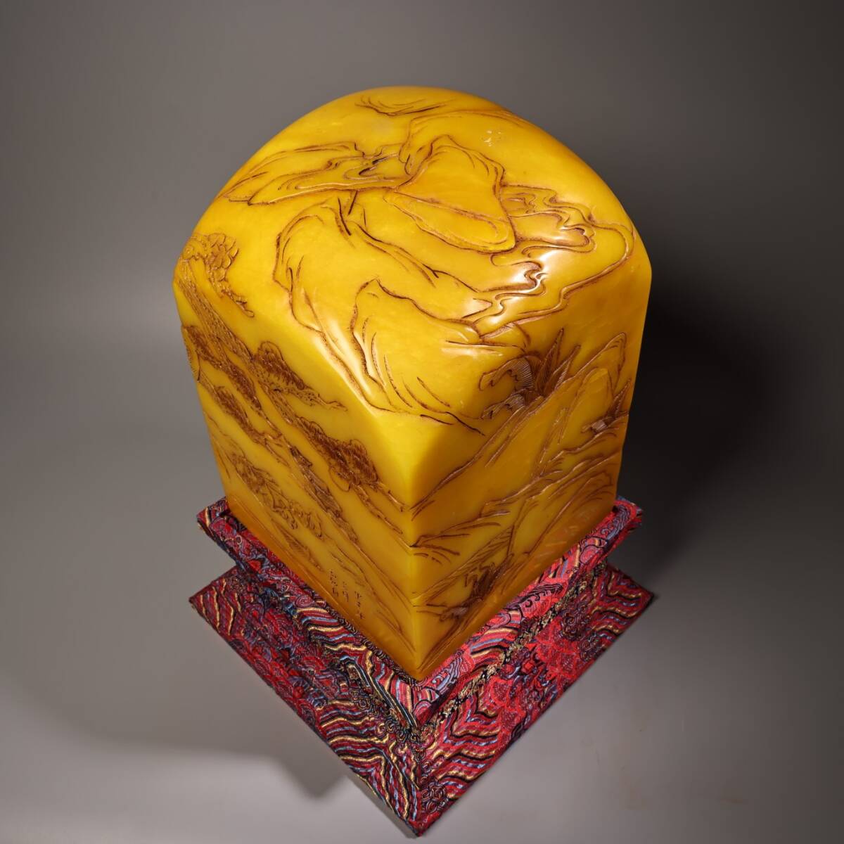 清時代 壽山石 田黄石彫 山林 人物(じんぶつ) 手彫り 印章 印鑑 印璽 極細工 置物擺件 古美術品 時代物 旧家蔵出 中国唐物 wn10.4 收藏