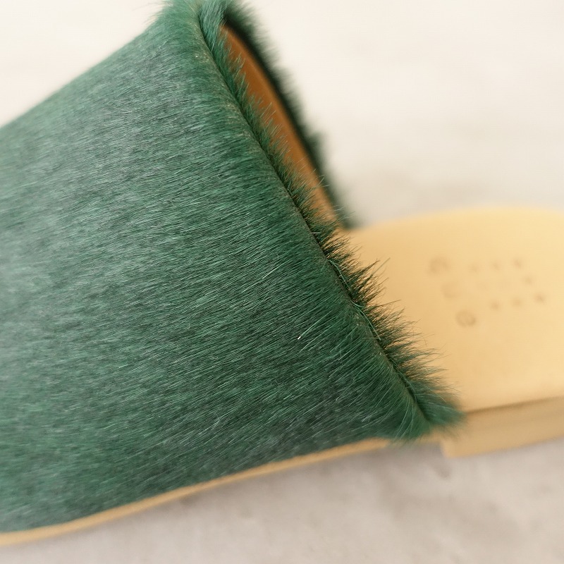 【未使用】キュー que *オープントゥサンダル SS/22*ダークグリーンハラコレザーパンプス靴シューズ(sh88-2408-66)【80I42】 收藏
