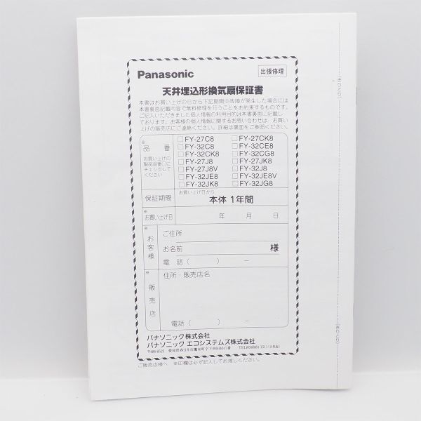 パナソニック 取扱説明書 天井埋込型換気扇 FY-27 FY-32 等 Panasonic 管19389 收藏