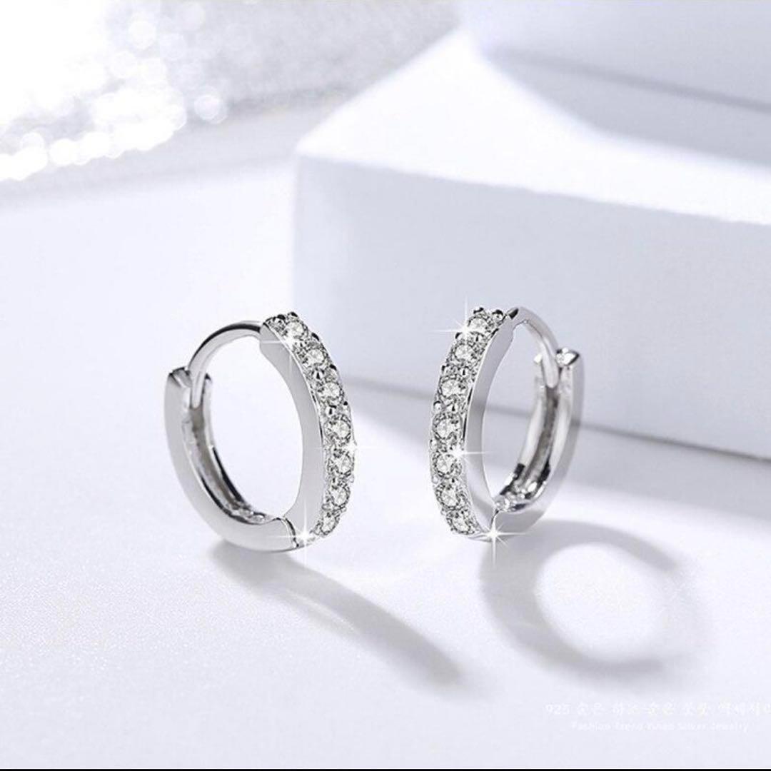 ジルコニアフープピアス シルバーダイヤ イミテーション シンプル 男女兼用 收藏