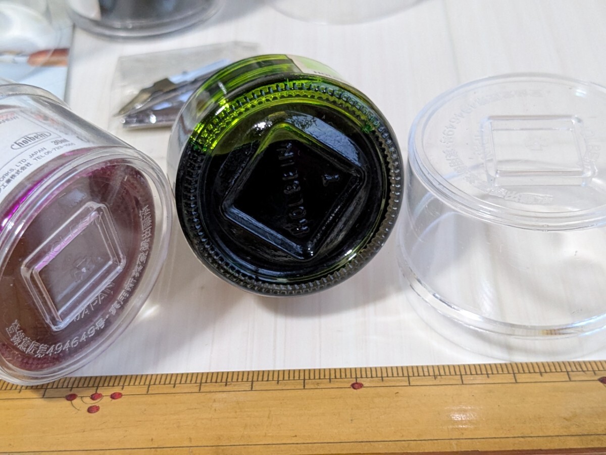 プラケース底面の四角と、インク瓶底の四角が合わさる遊び心のあるデザインです