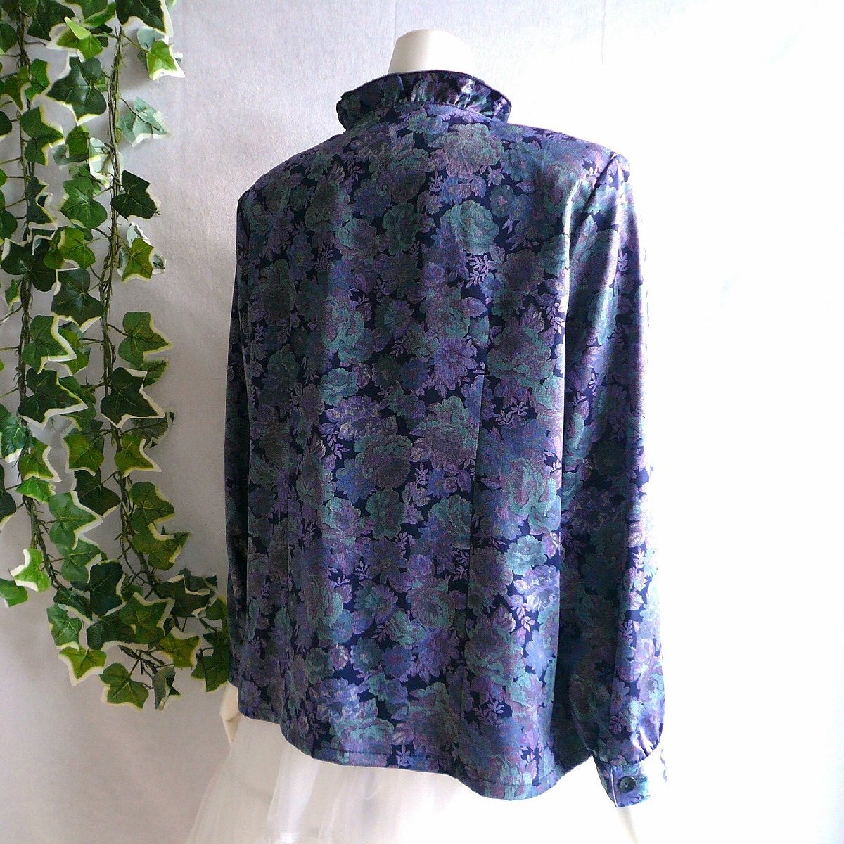 新品 9910 M 二重フリル襟 京都染 日本素材 ブラウス ジャケット 紺系玉虫色 レディース 和風 花柄 中国縫製 高級感 上質 50代 60代 70代 收藏